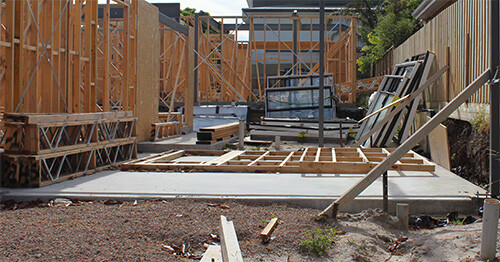 Disorganised construction site: Windows have been damaged due to delivery before roof.