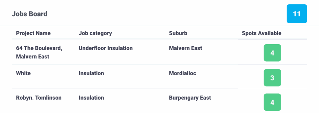 Invited into by your builder or accepted from the jobs board, builder quotes quotes are highlighted in a selectable tile with the builder, project name and location for easier identification and direct navigation.